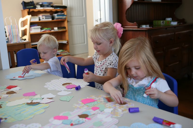 Make placemats from ice cream die cuts. This is one of those activities that I just need to step away and let the kids do their own thing. I try to make mine all nice looking and all Lincoln wants to do is use the glue stick as chapstick. Ha! Ha!