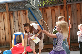 The kids started by decorating bags to carry their pinata loot and party favors in.